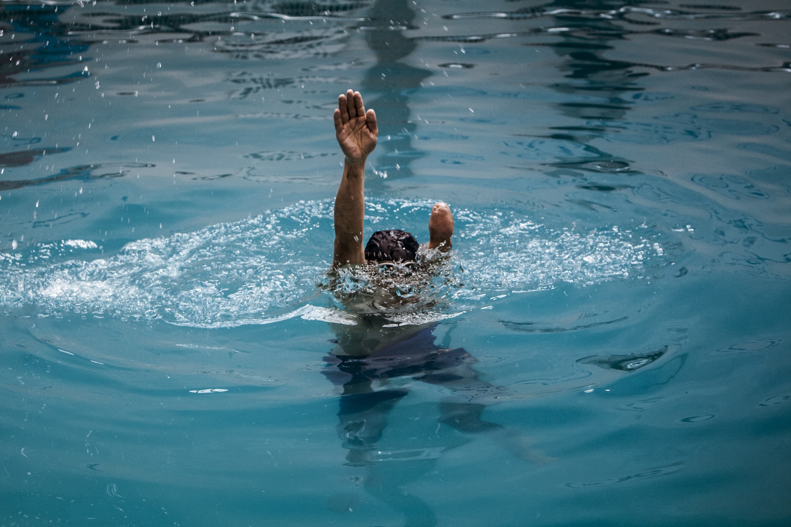 Zubair, 28 years old, training in a private swimming pool in the city of Kabul. Zubair lost his hand to a toy landmine when he was seven years old. Now he is a member of the national Paralympics team as a swimmer, but he also practices other disciplines, including Taekwondo and running. In 2012 he won a silver medal at the Southeast Asian Paralympics games in Taekwondo.