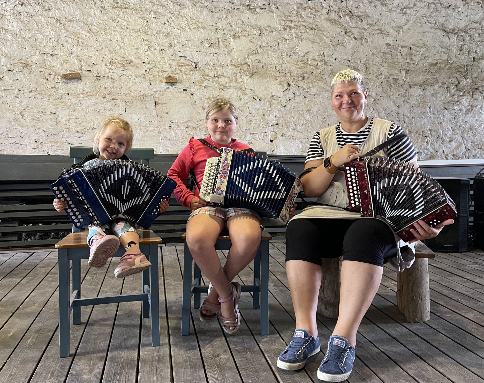 Piret Aus mängib lõõtspilli ja akordionit