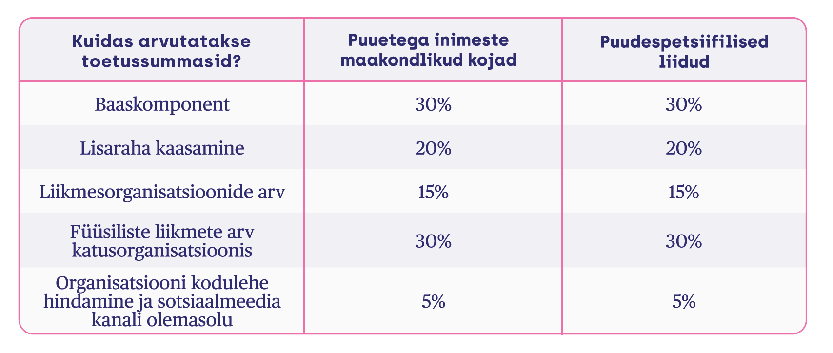 Toetuse taotlemise protsess on sarnane eelnevate aastate omaga. Tegevustoetus on suunatud EPIKoja liikmesorganisatsioonidele. Taotlused tuleb esitada elektroonilises keskkonnas. Võrreldes eelneva perioodiga on muutunud natuke toetussummade arvutamise valem. Toetussumma kujunemise määravad ära viis komponenti oma osakaaluga, toome need komponendid ära allpool.