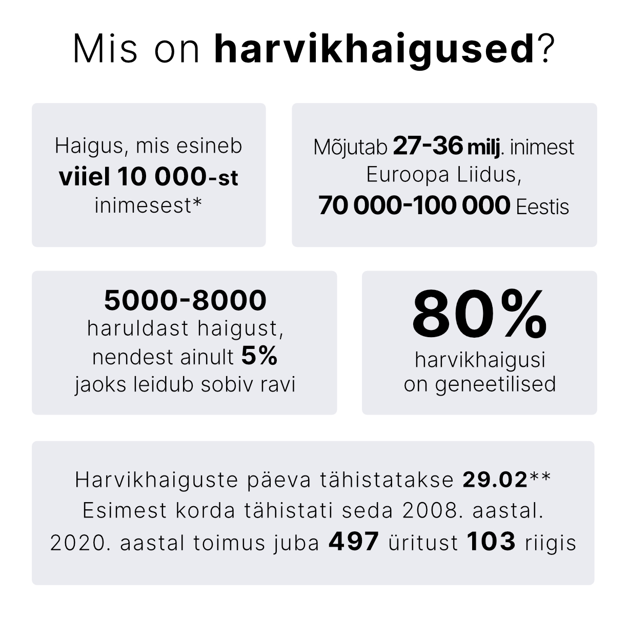Meditsiini arenedes on ilmnenud, et tihtipeale on ka sarnaste sümptomitega, ühe ja sama diagnoosiga patsientide tegelik toimetulek diagnoosiga üpris erinev. Seetõttu on tähtis, et sama harvikhaigusega inimesed saaksid vahetada omavahel infot ja kogemusi. Harvikhaiguste puhul on see aga keeruline, kuna mõnda haigust on Eestis diagnoositud vaid ühel-kahel inimesel.